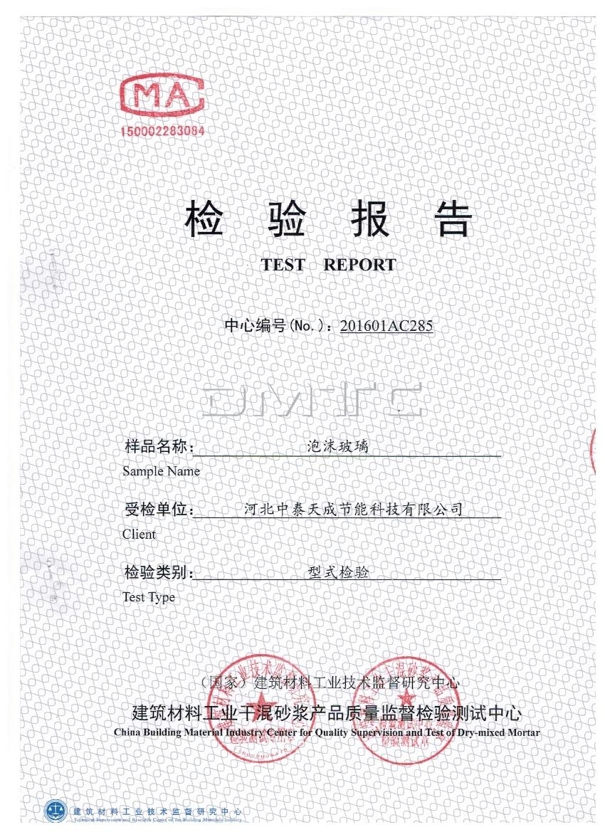 以上是它檢測的全項系數(shù),泡沫玻璃板廠家告訴您一般做單項檢測的就是導(dǎo)熱系數(shù),抗壓強度,這兩項,檢測依據(jù)泡沫玻璃板JC/T647-2014《泡沫玻璃絕熱制品》,防火等級區(qū)分依據(jù)的是GB8624-2012建筑材料及制品燃燒性能分級,如果您還有其它問題請聯(lián)系廠家河北中泰天成節(jié)能科技有限公司,咨詢電話:18003365866